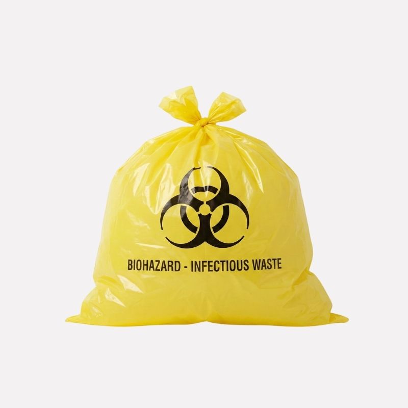 Plastik kuning medis khusus untuk limbah medis sesuai standar.